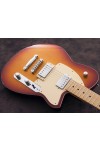 Body: korina solidbody. cream binding. 16-1/2" x 13" x 1-3/4".Pickups: two Reverend HUmbuckers, output/tone calibrated for each position. Hum cancelling when combined.Neck: bolt-on, maple, amber tinted satin finish.Truss rod: dual-action, access at headstock.Scale: 25-1/2"Fingerboard: rosewood, maple (tobacco burst), 12" radius.Frets: 22 medium jumbo.Neck profile: medium oval.Nut: 1-21/32" (42 mm) width, graphite.Tuners: Reverend pin-lock tuners.Bridge: TOM w/ stop tailControls: custom volume & tone, Bass Contour, 3-way.Strings: 10-46